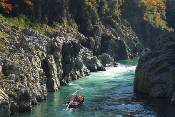 紅葉の大歩危峡遊覧船と祖谷のかずら橋