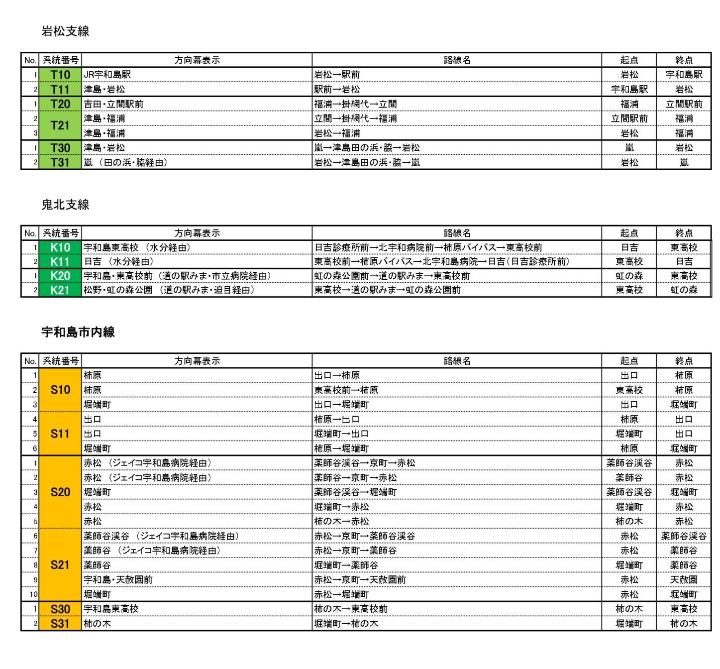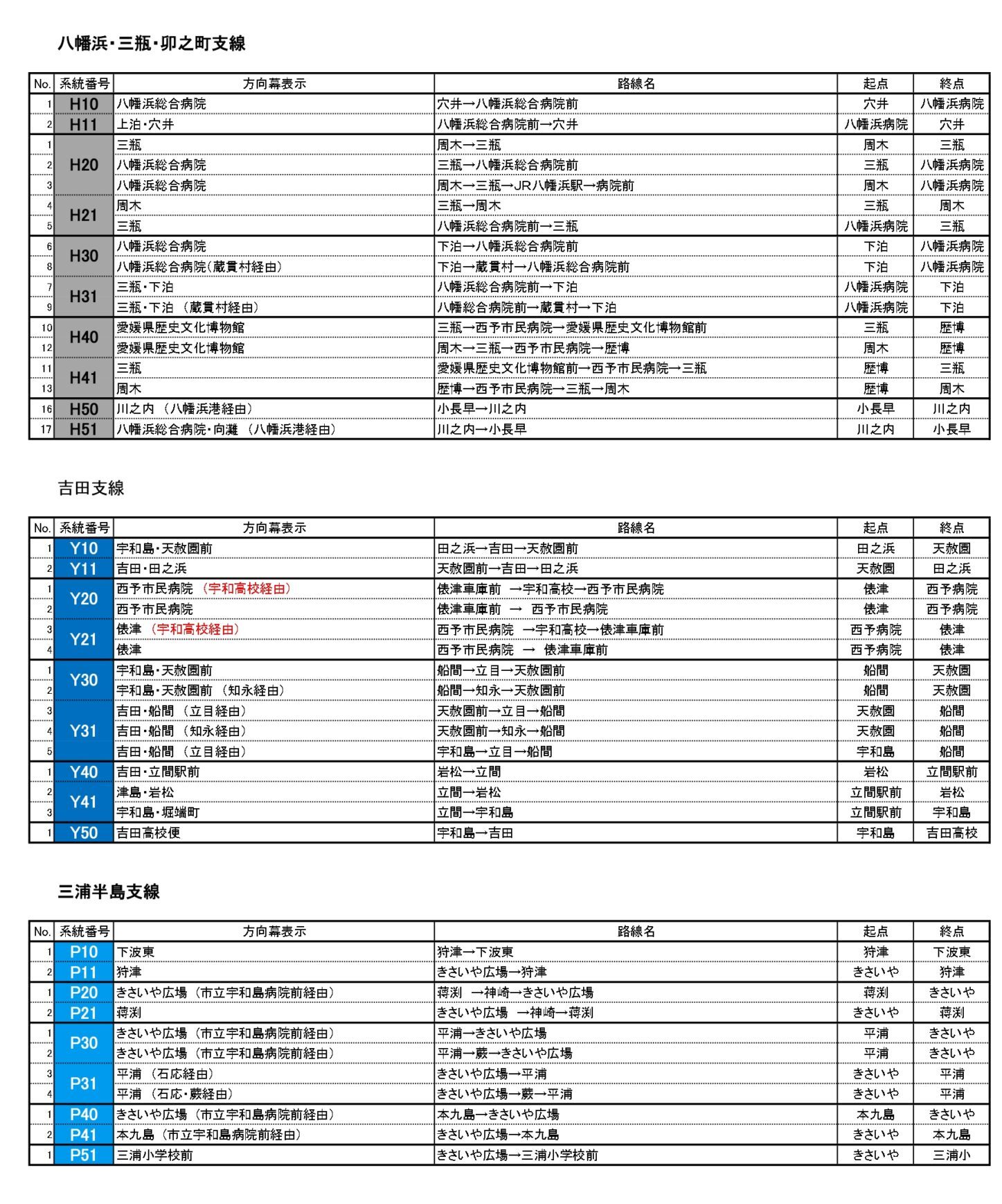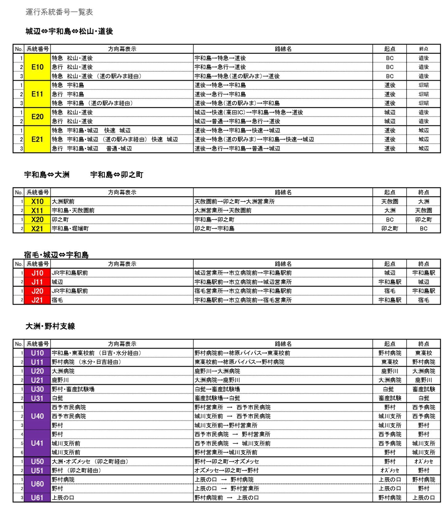 路線バス 運行系統番号一覧